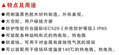 ●可以裝配用于現(xiàn)場環(huán)境溫度140℃的熱電阻、熱電偶。