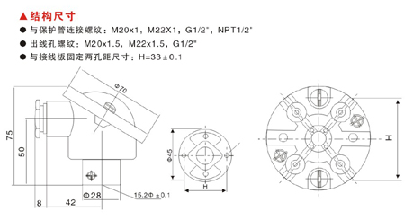 ●可以裝配各種結構的熱電偶、熱電阻和帶溫度轉換器的熱電偶、熱電阻。