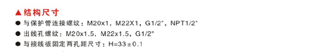 與保護管連接螺紋: M20x1,M22x1, G1/2", NPT1/2"