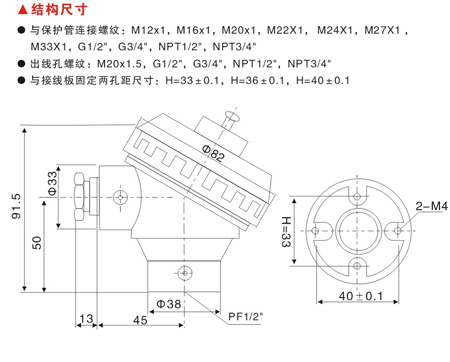● H =33±0.1的可以裝配國外接線版或溫度轉(zhuǎn)換器與國際接軌。