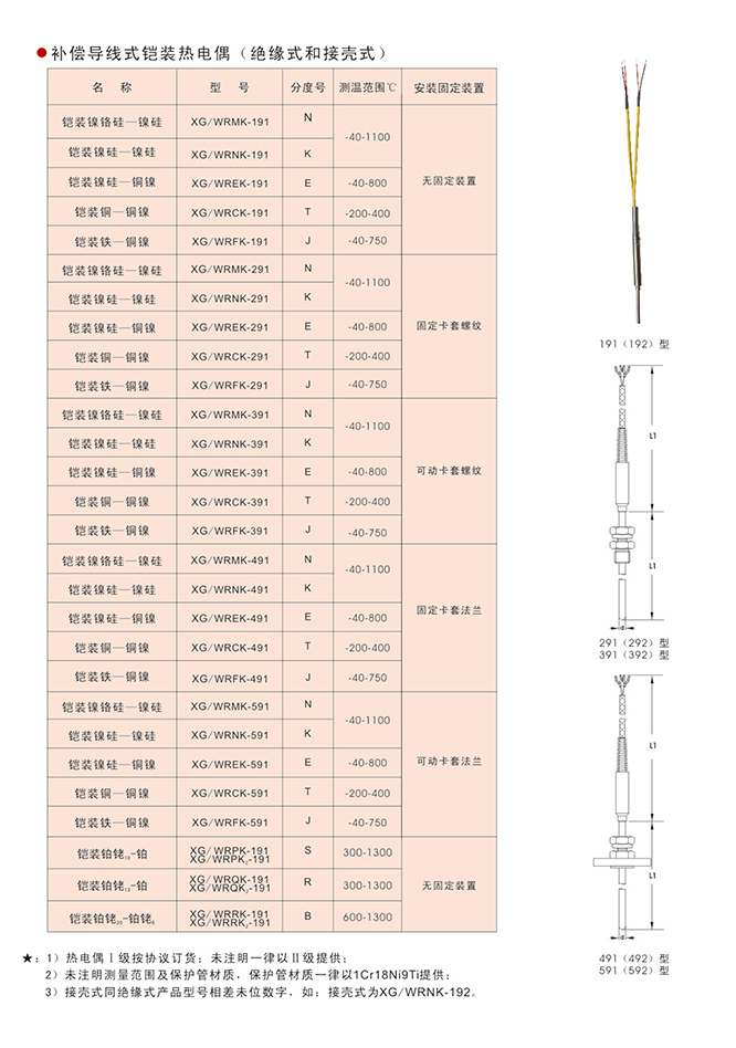 補(bǔ)償導(dǎo)線式鎧裝熱電偶